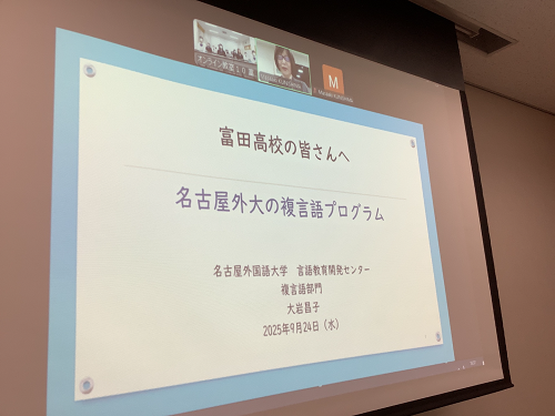 国際科1年生を対象に、名古屋外国語大学の大岩先生に「複言語の学習」についてオンライン講義をしていただきました。