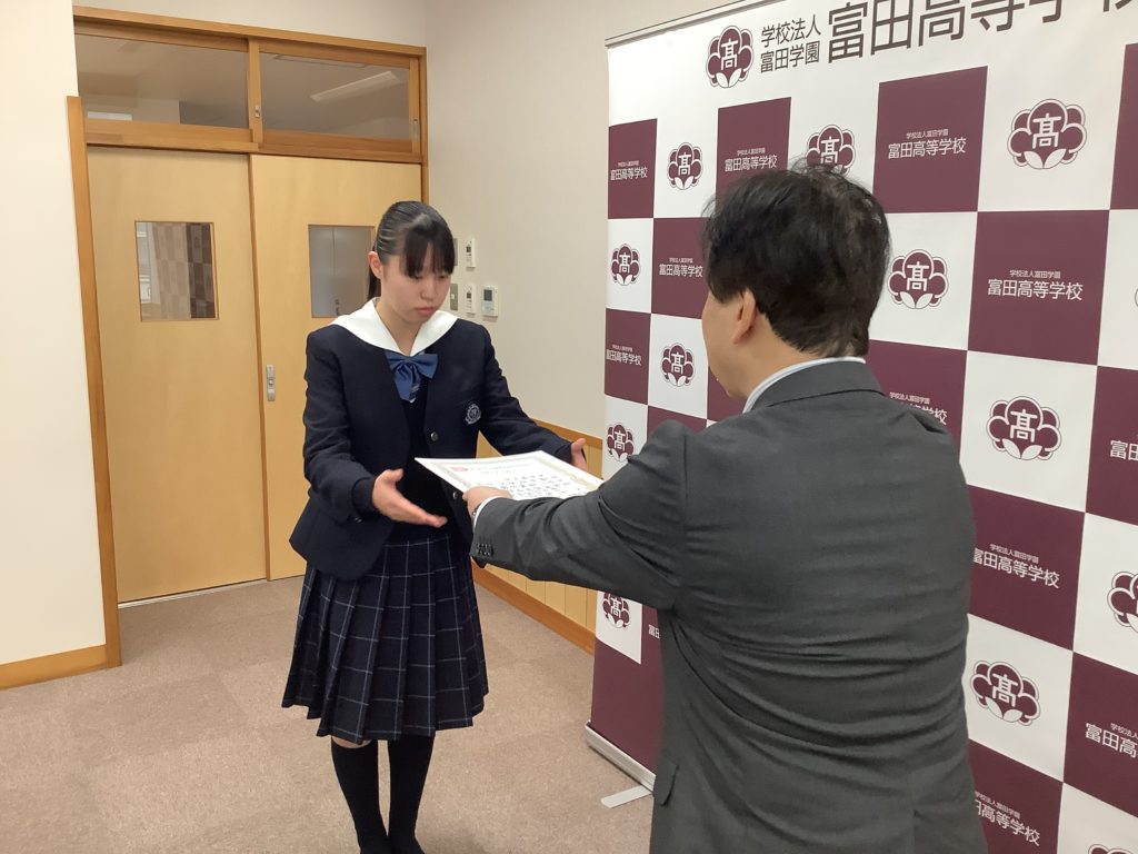 学校長式辞と生徒指導部長講話、入賞のあった部活の披露が行われました。