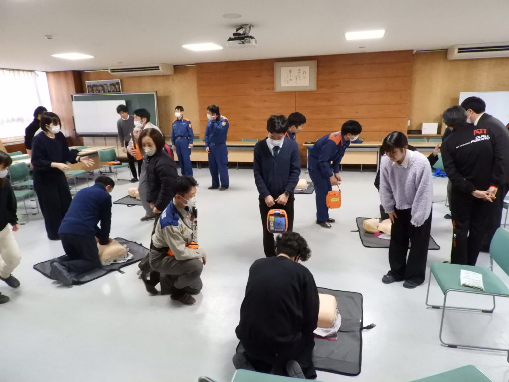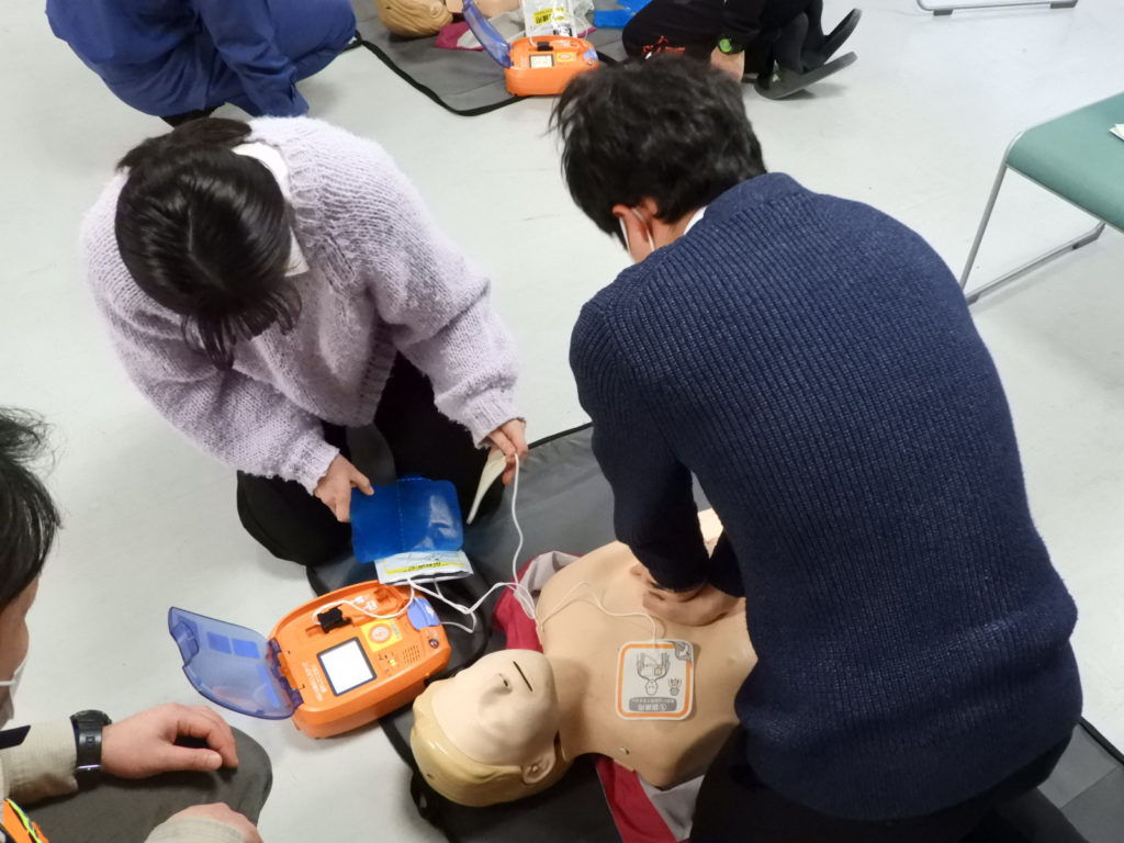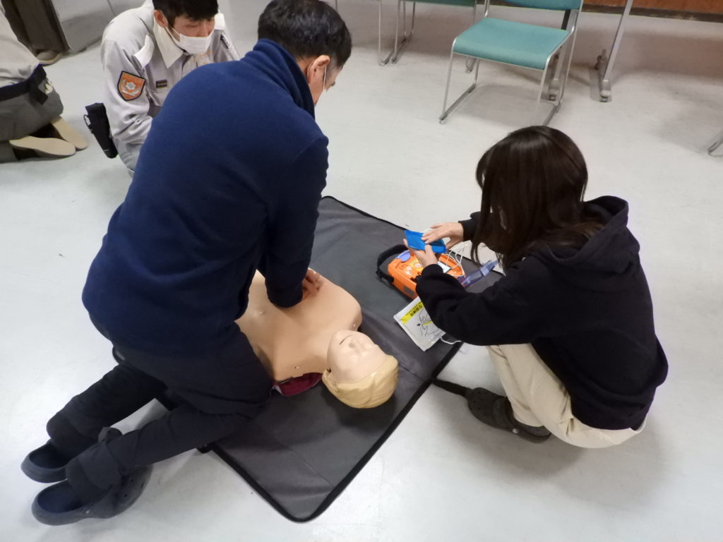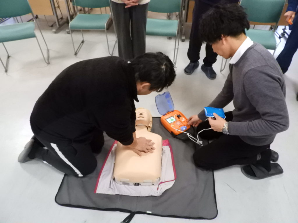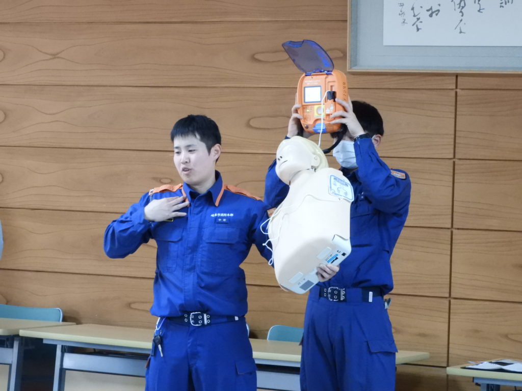 消防署の方に来ていただき、心肺蘇生法とAEDの使い方についての講習がありました。