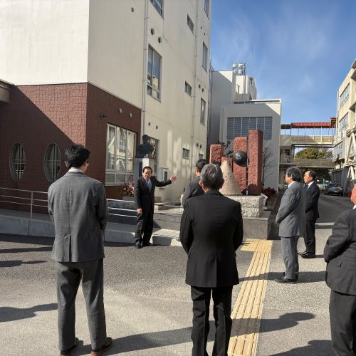本日は創立者富田かね先生の胸像の前に、同窓会役員の方、理事長先生始め学園関係者が集まり「かね先生を偲ぶ会」が行われました。